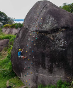 Para os mais aventureiros, o parque conta ainda com um paredão de escalada com rapel, além do arvorismo, montado a cerca de 5 metros de altura. O circuito tem 170 metros de extensão e inclui 10 pontes suspensas, com níveis variados de dificuldade, o que torna a atividade acessível tanto para iniciantes quanto para quem já tem mais experiência.