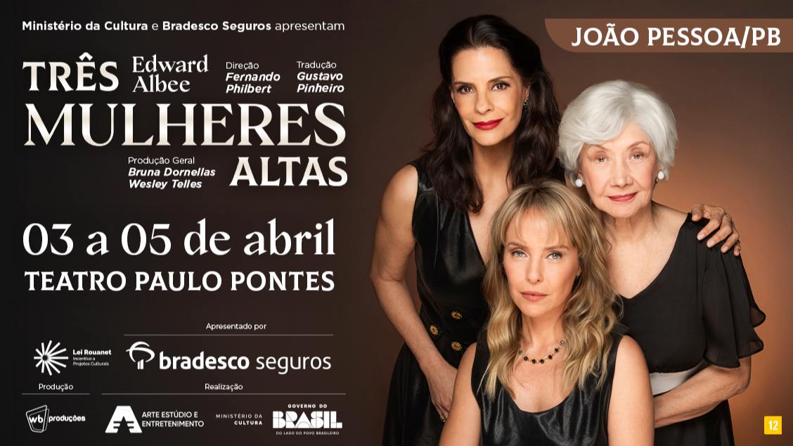 O espetáculo Três Mulheres Altas, um dos maiores clássicos da dramaturgia contemporânea, chega a João Pessoa nos dias 3, 4 e 5 de abril, no Teatro Paulo Pontes. Estrelada por Ana Rosa, Helena Ranaldi e Fernanda Nobre, a peça integra uma turnê nacional de grande sucesso, que já passou por 26 cidades brasileiras e foi assistida por mais de 90 mil espectadores.